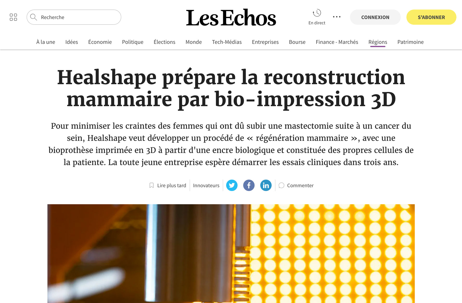 An article published in March by Les Echos to explain Healshape’s perspectives.